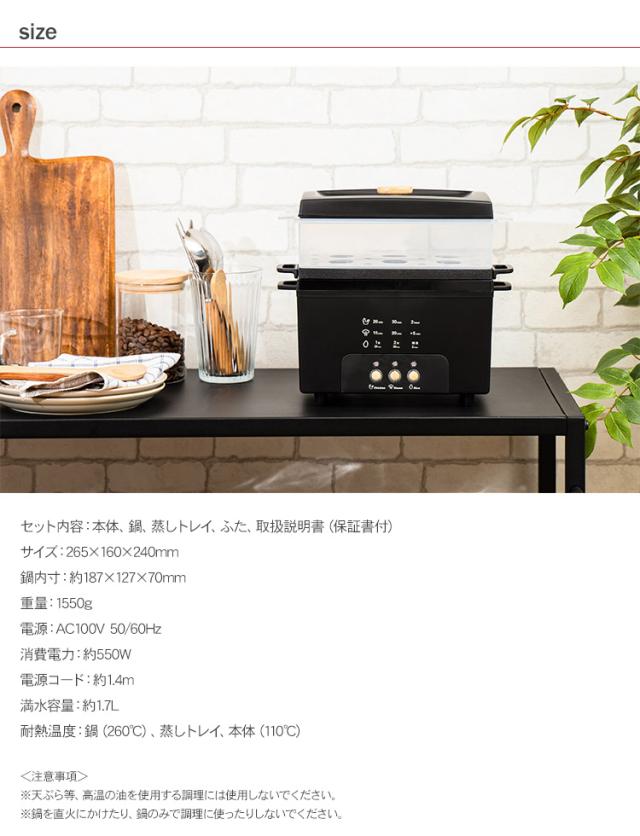 セット内容:本体、鍋、蒸しトレイ、ふた、取扱説明書(保証書付)