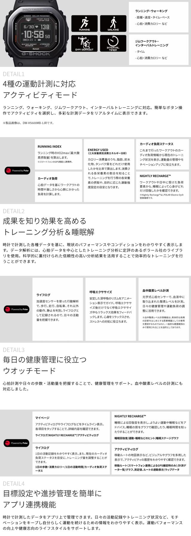 G-SHOCKのスポーツライン「G-SQUAD」から、日常生活で活躍するDW-H5600シリーズです。