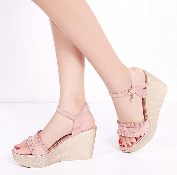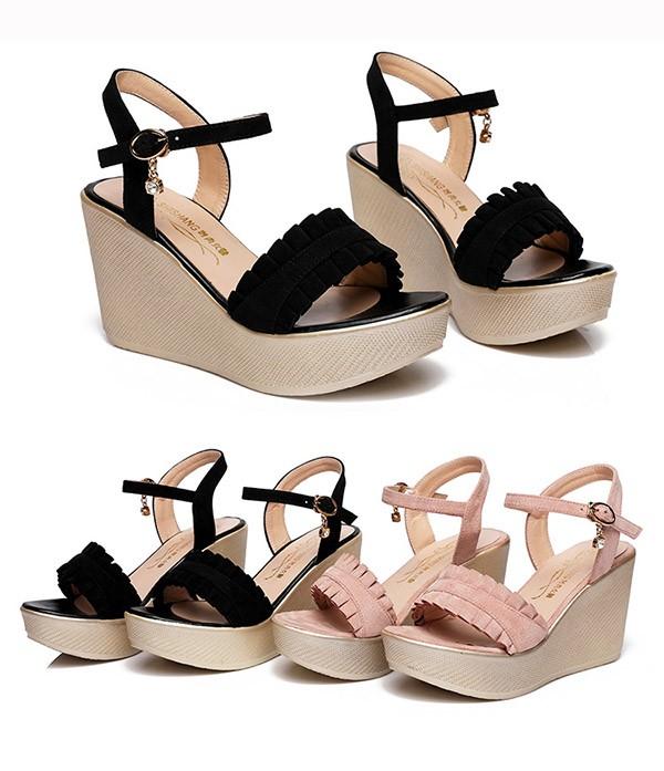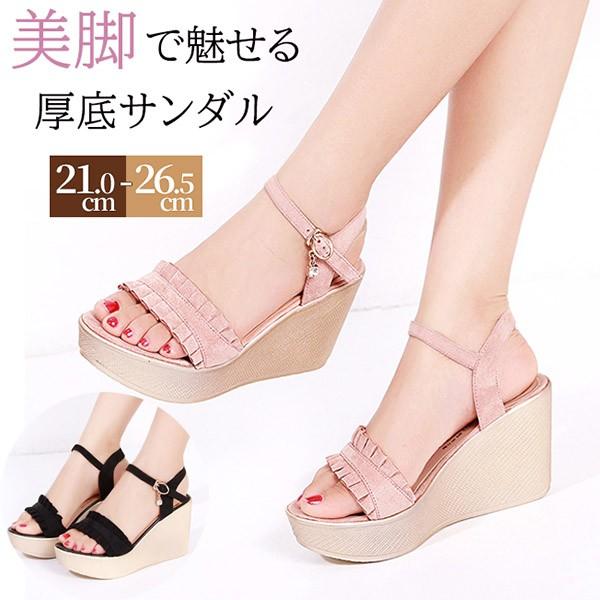サンダル 厚底 厚底サンダル フリル ストラップ ウェッジソール 8.5センチ 痛くない 歩きやすい 甲高 幅広 ワイズ おしゃれ 大きいサイズ 小さいサイズ 美脚 クッション オフィスサンダル バックストラップ コンフォートサンダル 21.0 21.5 22.0 22.5 23.0 23.5 24.0