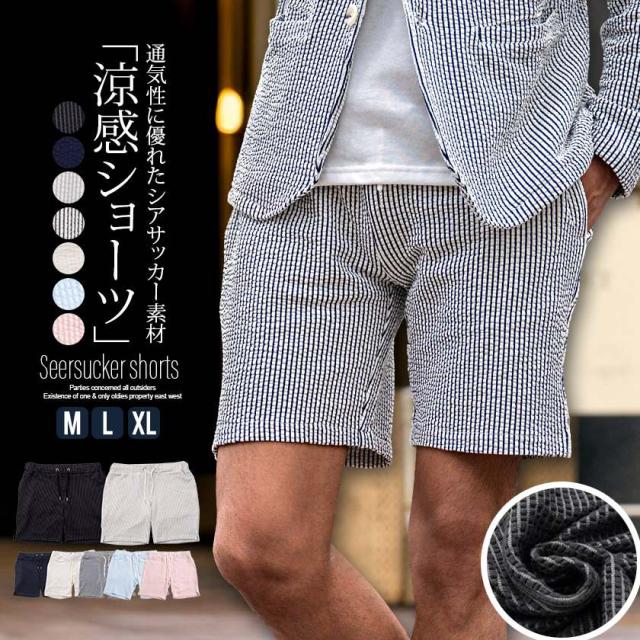 ハーフパンツ メンズ おしゃれ ショートパンツ ショーツ 短パン シアサッカー パンツ ストライプ ストレッチ 膝上 スリム 細身 ブラック グレー ネイビー ホワイト 黒 紺 白 M L XL LL CavariA 服 父の日 春 夏 春服 夏服 ファッション メンズファッション [CAJP23-02]
