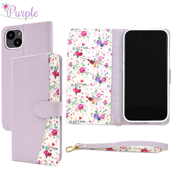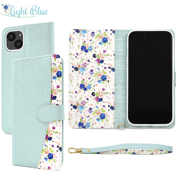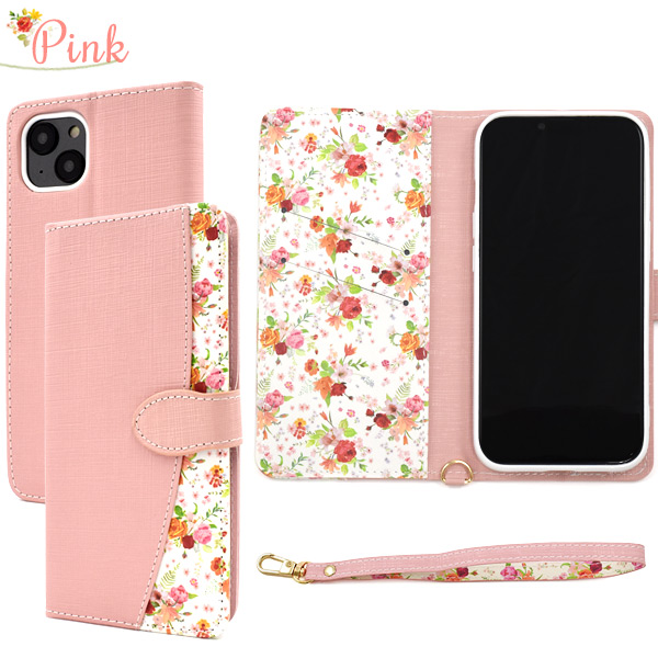 スマホケース iPhone 14 Plus お花柄 手帳型 ストラップ付属 かわいい 上品 動画視聴 スタンド カードポケット 保護カバー おしゃれ フラワーデザイン レザー アイフォン14プラス アイフォンケース iPhoneケース