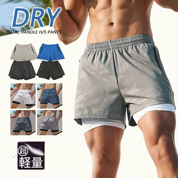 ハーフパンツ メンズ 半ズボン ショートパンツ 迷彩柄 タイツ付き ポケット サーフパンツ 海水パンツ ボードパンツ 夏服 吸水速乾 綿 部屋着