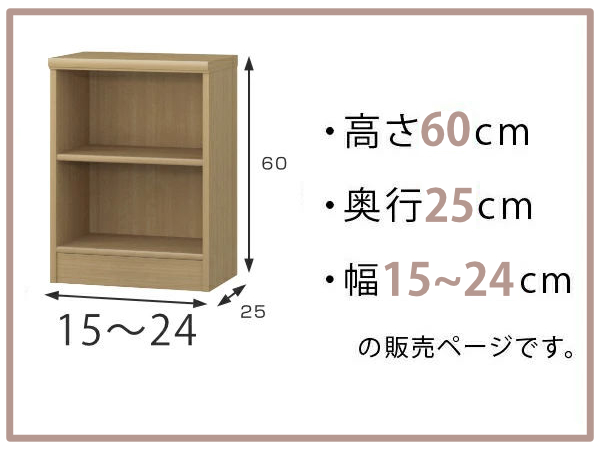 オーダー本棚 標準棚板タイプ 幅15-24cm 奥行25cm 高さ60cm ( 本棚 壁面収納 ラック オーダー 多目的 棚 日本製 オープンラック リビング収納 収納 家具 シェルフ 壁面 標準 )