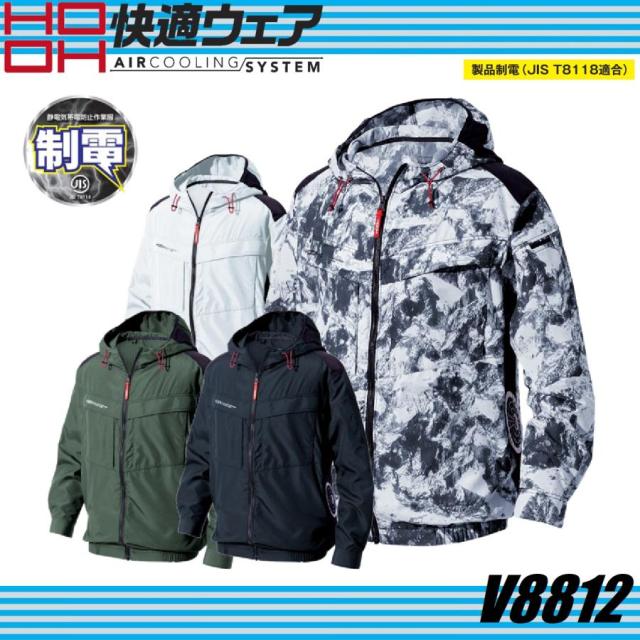 制電素材 (JIS T8118) 空調ウェア EFウェア HOOH 村上被服 V8812 快適ウェア (服のみ) サイドファン長袖フードジャケット (社名ネーム一か所無料)
