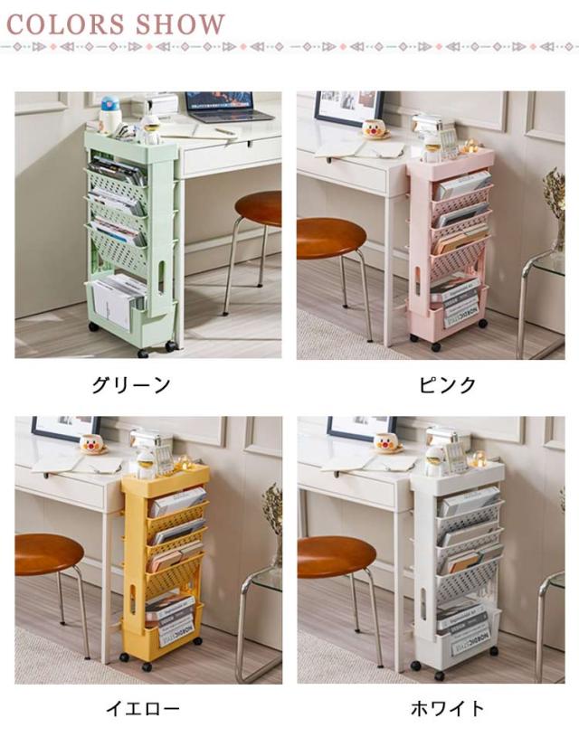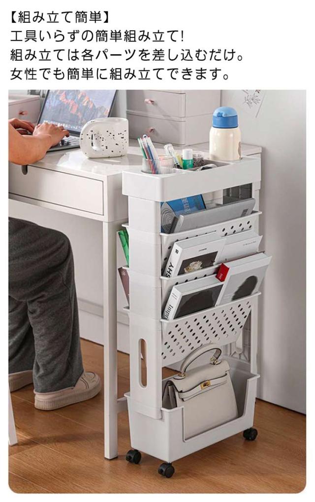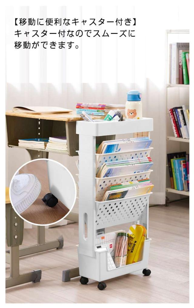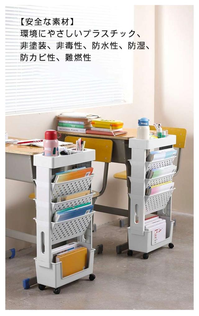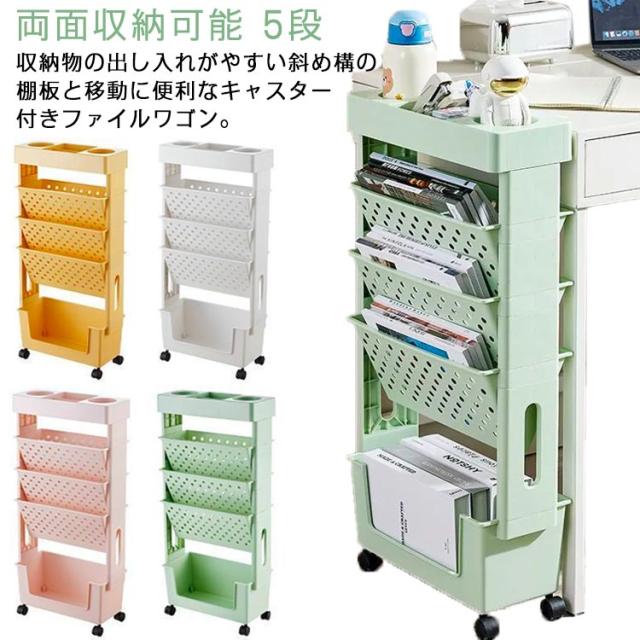 5段 ファイルワゴン キャスター付 デスク下収納 両面 書類 収納 仕切りデスク下本棚 A4対応 本立て マガジンラック ファイル立て 収納ボックス 棚 移動 小物収納 文房具収納 図書館 収納棚 雑誌収納 本収納 新聞収納 新聞ラック