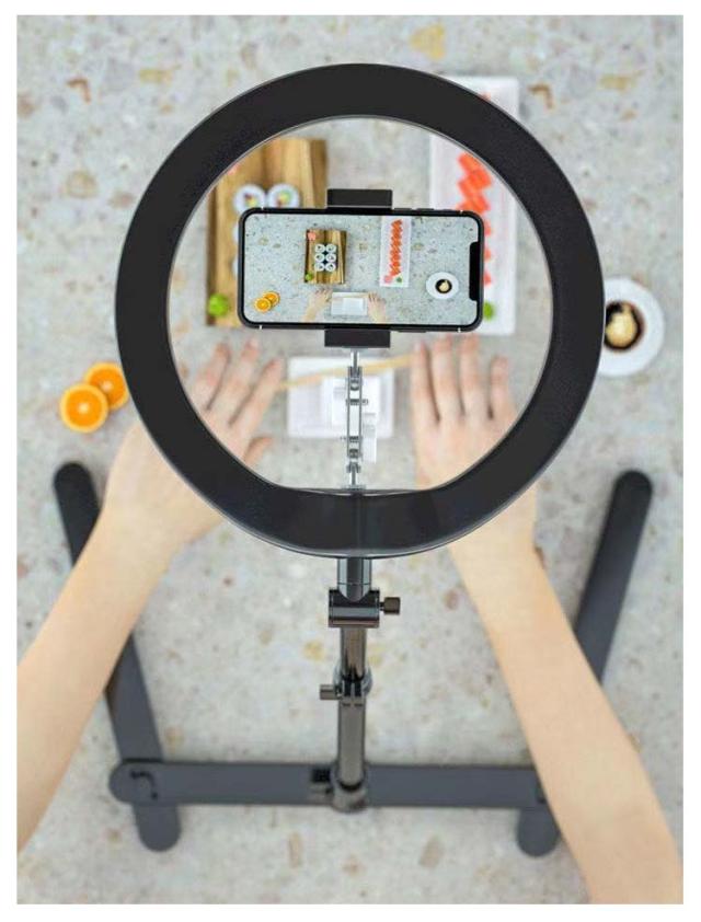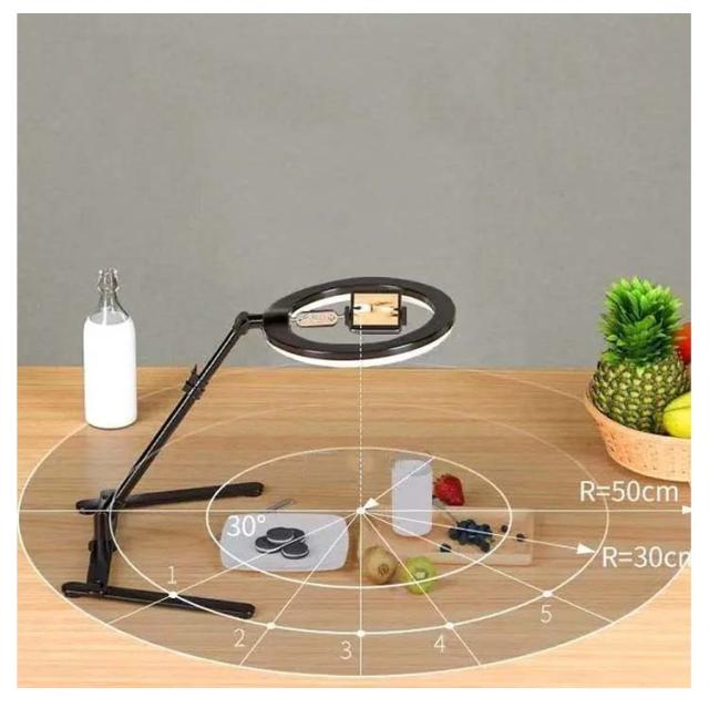 俯瞰撮影 スマホスタンド LEDリングライト付き 真上から撮影 スタンド LEDライト 自撮り 3色モード付き USB 接続 照明ライト 動画 撮影 10段階調整 スタンド 卓上 ライブ配信 美肌効果 リモート テレワーク zoom