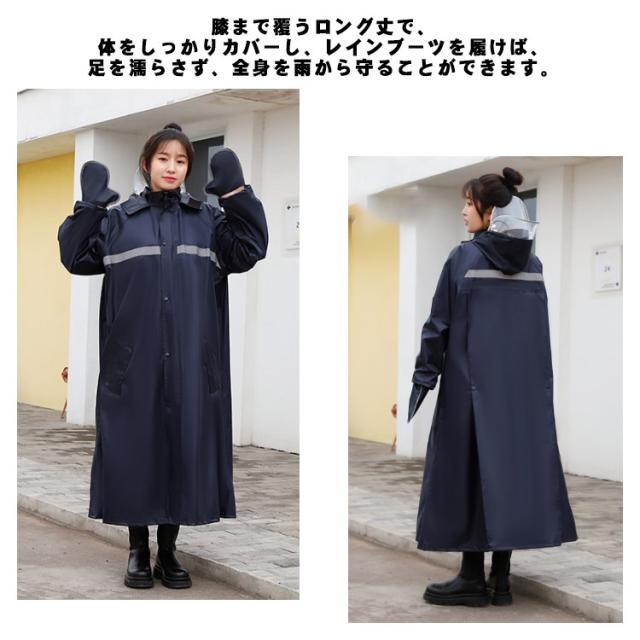 | 雨の日だからこそ、おしゃれなレインコートで、ハッピーに♪ 自転車、ウォーキング、バックパッカーに使用することができます。 膝まで覆うロング丈で、体をしっかりカバーし、レインブーツを履けば、足を濡らさず、全身を雨から守ることができます。 背中にはスナップボタンが付いており、普段はボタンを付けたまま使用できますが、ボタンを外すとかなりゆとりのある大きめのサイズに変わり、バックパックやバッグを背負っていてもゆったりと着ることができます。 台風や梅雨の季節はもちろん、通勤・通学や自転車、雨天時の作業にも邪魔にならずに重宝します。 フードに透明で取り外し可能なレインバイザーが装着されており、視界をクリアにしながら防滴、防風、防雪の効果を発揮します。 | |