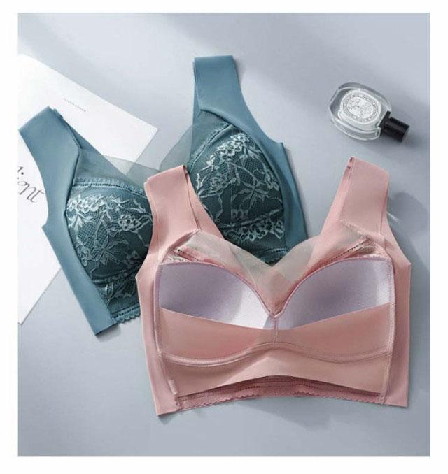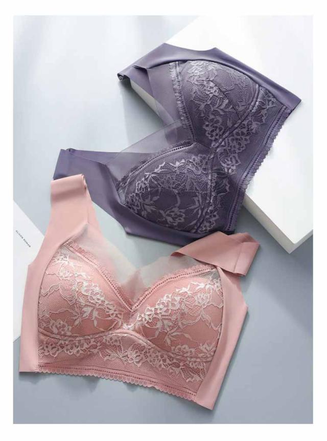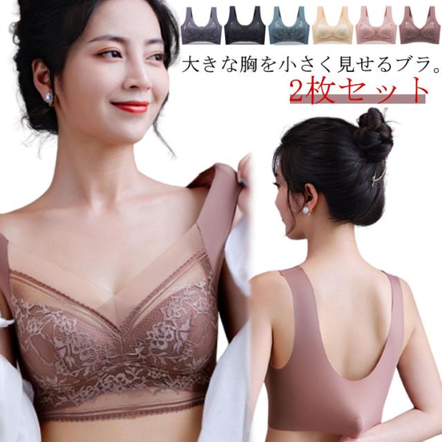 2枚セット 胸を小さく見せるブラ ブラジャー インナー フルカップ ノンワイヤー ナイトブラ 大きいサイズ 脇高 補正下着 痩せ見え レディース 育乳ブラ 補正ブラ スマートブラ 下着 垂れ防止 かわいい おやすみブラ 美胸 レース 脇肉 送料無料