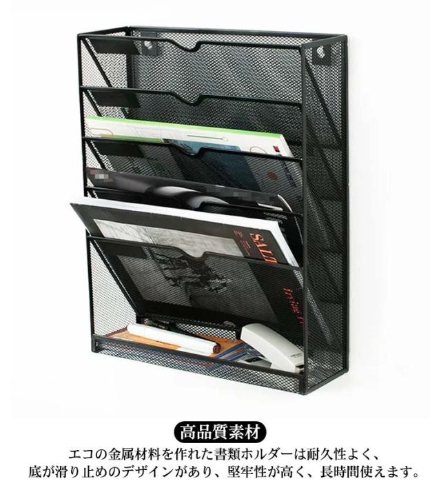 ファイルラック 卓上収納ラック 壁掛け 6段 書類トレー メッシュメタル 壁掛け書類ラック 多機能 新聞/雑誌/A4ファイル/フォルダー/書類入れ 収納 頑丈 机上用品 整理