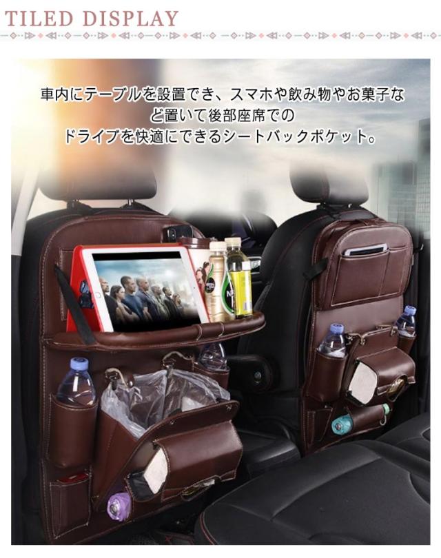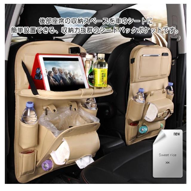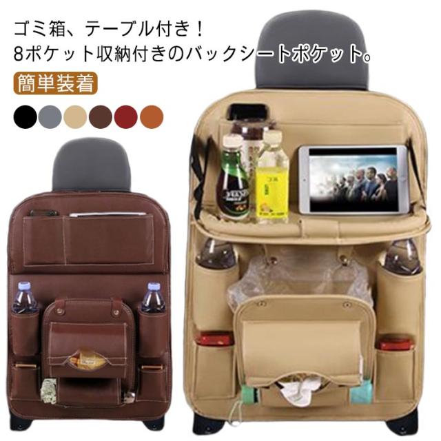 シートバックポケット 車 テーブル 車内 PU ゴミ箱 シート バック ポケット 子供 シートポケット シートカバー ティッシュホルダー タブレットホルダー 工具不要 簡単装着 運転席 助手席 背面 固定 傘 飲み物 タブレット スマホ 車内 収納