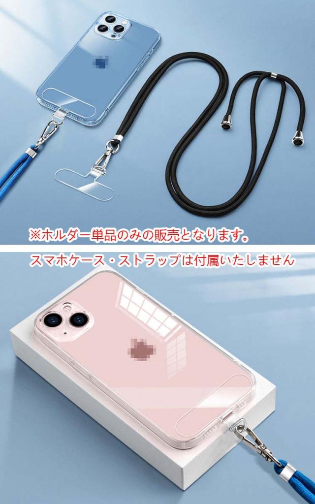 ストラップホルダー ストラップアタッチメント 後付け 紛失防止/落下防止 全機種対応 ホルダー クリア 透明 ステンレス 薄い スリム ショルダー 肩掛け 斜めがけ 首掛け 手ぶら スマートフォン iPhone Android ストラップホルダー ホルダー 2枚セット