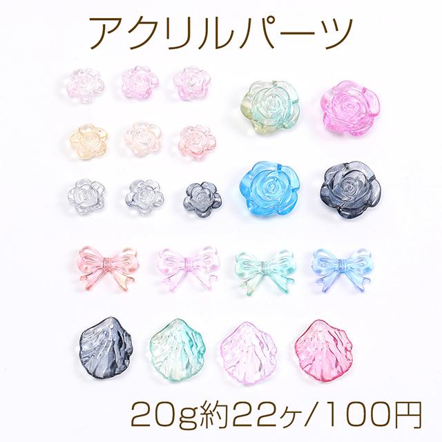 アクリルパーツ アクリル貼付けパーツ アクリルチャーム フラワー&花びら&リボンミックス オーロラグラデーションカラー(20g約22ヶ)