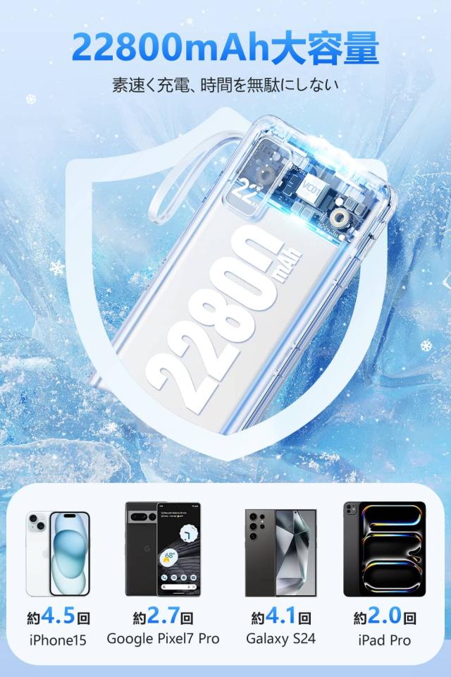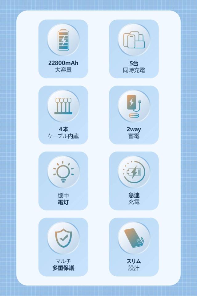 ・22800mAhの超大容量を備えて、各種類usbポートで多数デバイスに複数回も充電可能です。 ・急速充電ポートを搭載し、充電速度は以前の2倍になります。