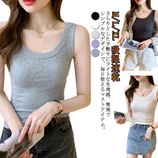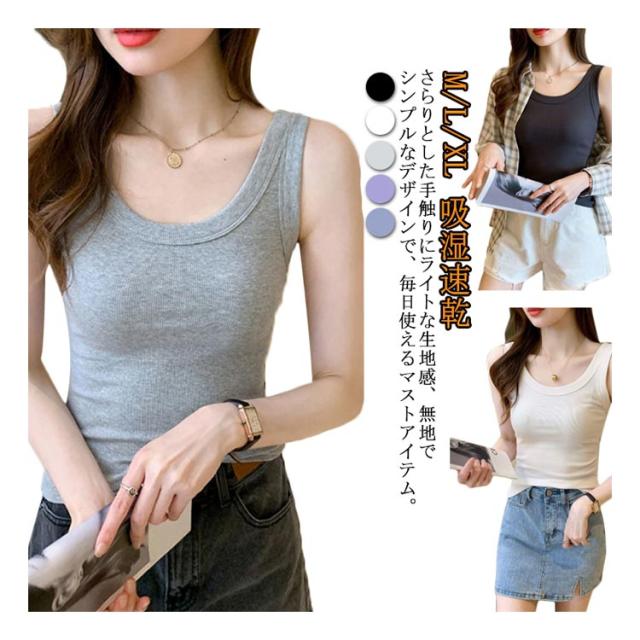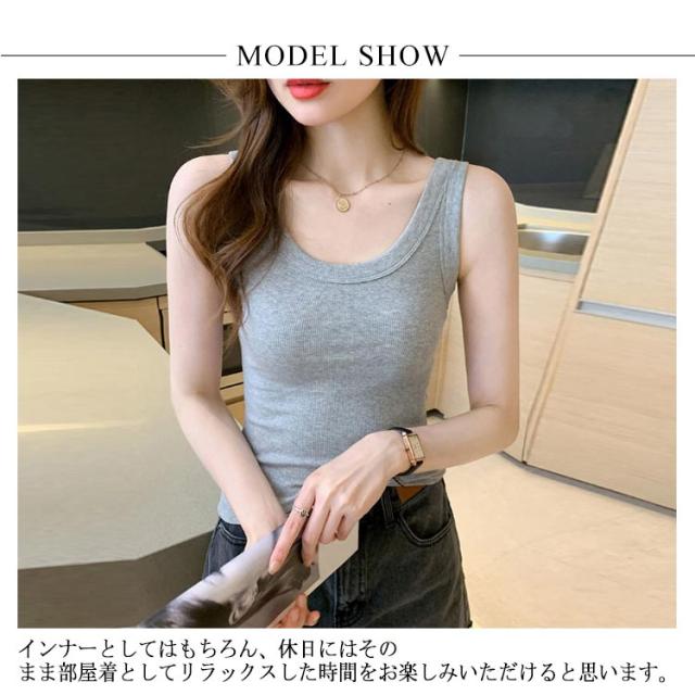 タンク 脇汗ガード ブラ紐 レディース 夏 隠し ノースリーブシャツ インナーシャツ 脇高 リブ グレー Uネック プルオーバートップス 見えない ラウンドネック お洒落 黒 白 インナー ブラ紐隠しタンク ブラ紐隠し レイヤード 吸湿速乾 抗菌防臭 タンクトップ