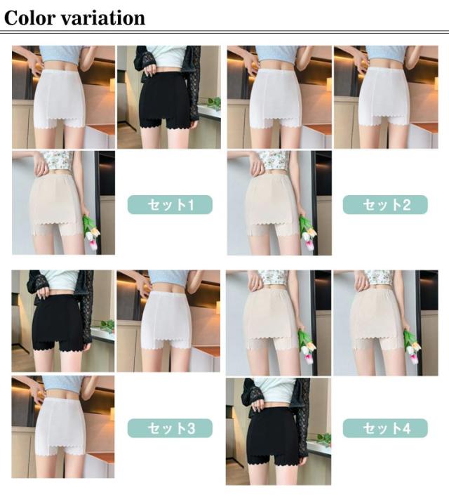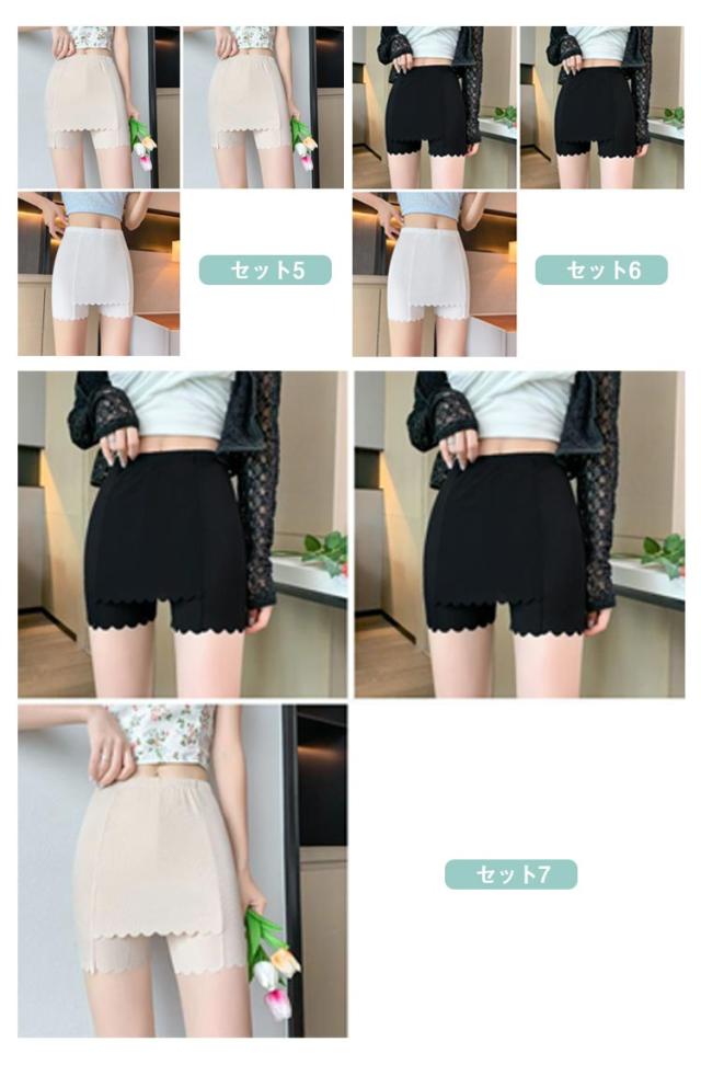 スカート 3枚セット インナー 薄手 レディース ペチパンツ ペチコート Yライン ワンピース ストレッチ 伸縮性 インナーパンツ 透け防止 ひんやり Yラインカバー