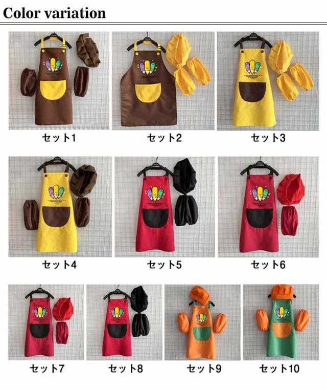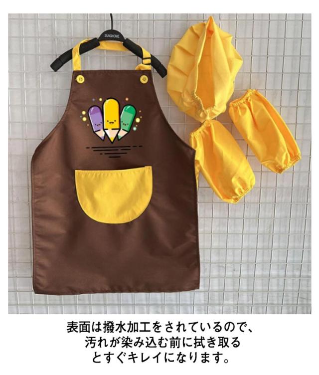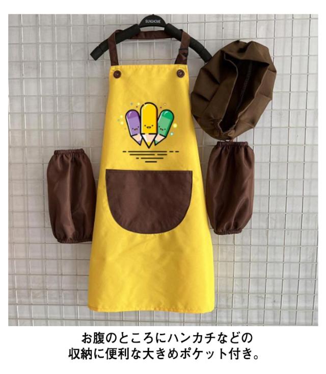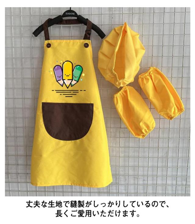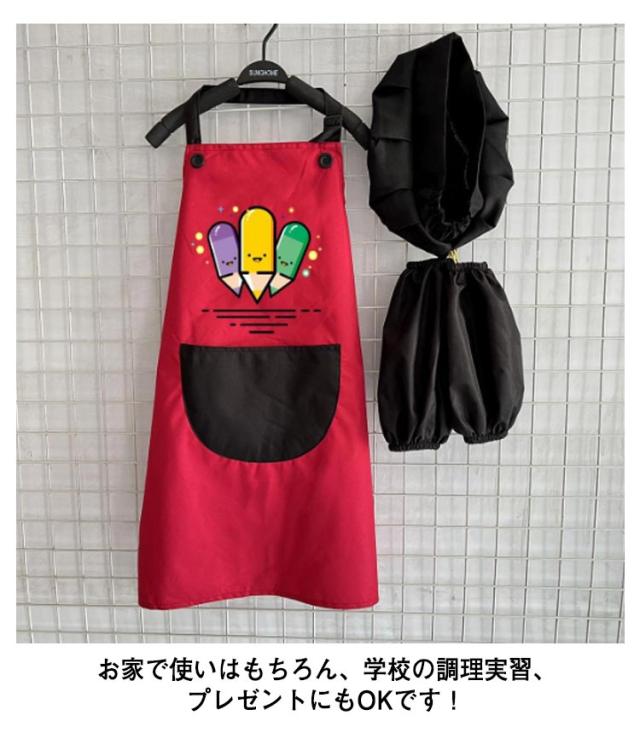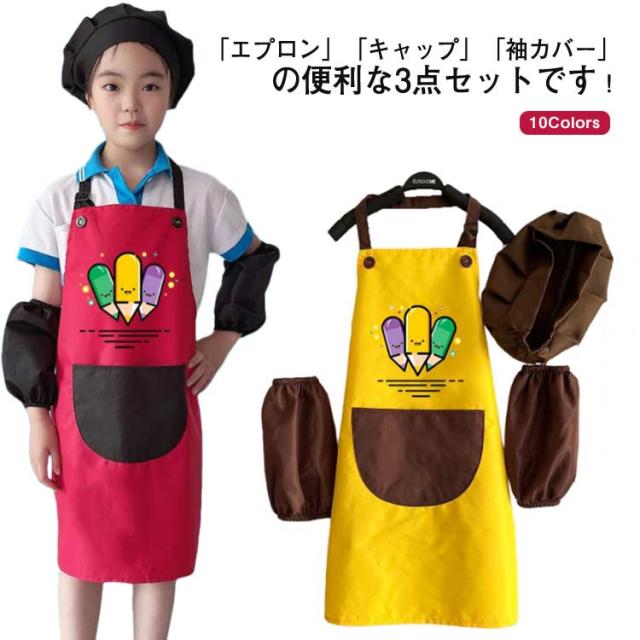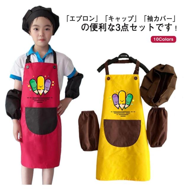エプロン 女の子 キッズ用 袖カバー 可愛い 3点セット 保育園 低学年 男の子 小学校 おしゃれ 子供用 防水性 着脱簡単 エプロン 幼稚園 調理実習 キャップ