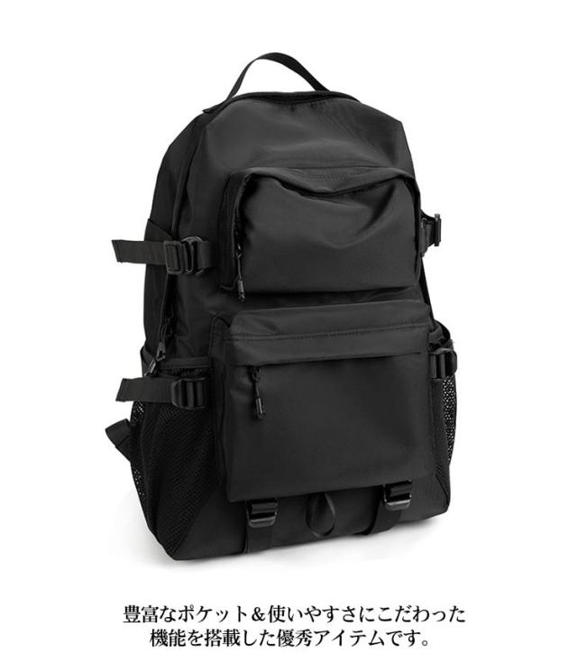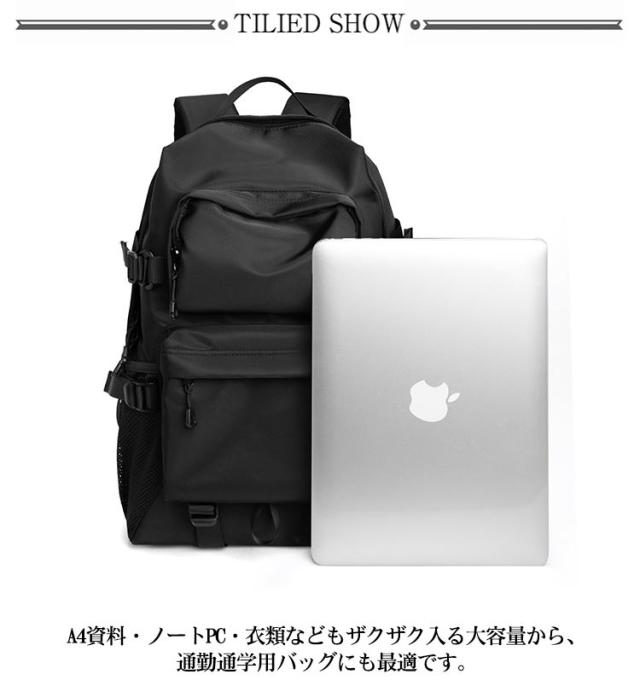 | 大人気、スマートカジュアル多機能リュックサック。 防水加工を施した生地を採用し、急な雨に濡れてもサッと拭くだけでOK! さらに、しっかり厚みのある丈夫な生地で、ガシガシ使ってもへこたれない。 クッション入り&裏側は通気性バツグンなメッシュ仕立て。体にフィットする曲線シルエット。 ずり落ちを防止するチェストベルト付き(なで肩さんや小さいお子さんでも優しい設計) 普段使いにはもちろん、トラベルバッグ、ジムバッグ、登山バッグなどアクティブなシーンにもぴったり◎ A4資料・ノートPC・衣類などもザクザク入る大容量から、通勤通学用バッグにも最適です。 カジュアルすぎない見た目で2泊3日の出張バッグにも。 きれいめコーデやスーツスタイルにもマッチするオシャレな一品に仕上げました。 豊富なポケット&使いやすさにこだわった機能を搭載した優秀アイテムです。 | |