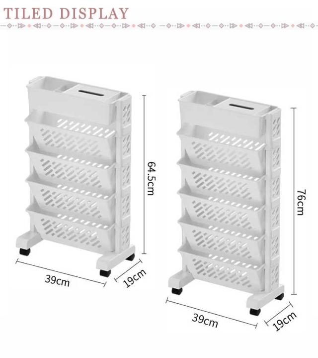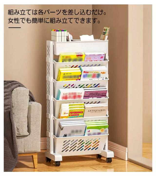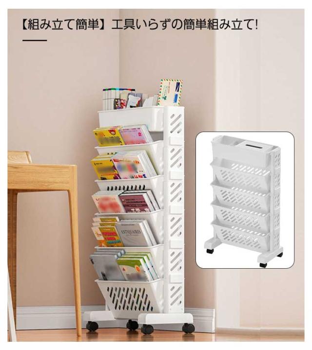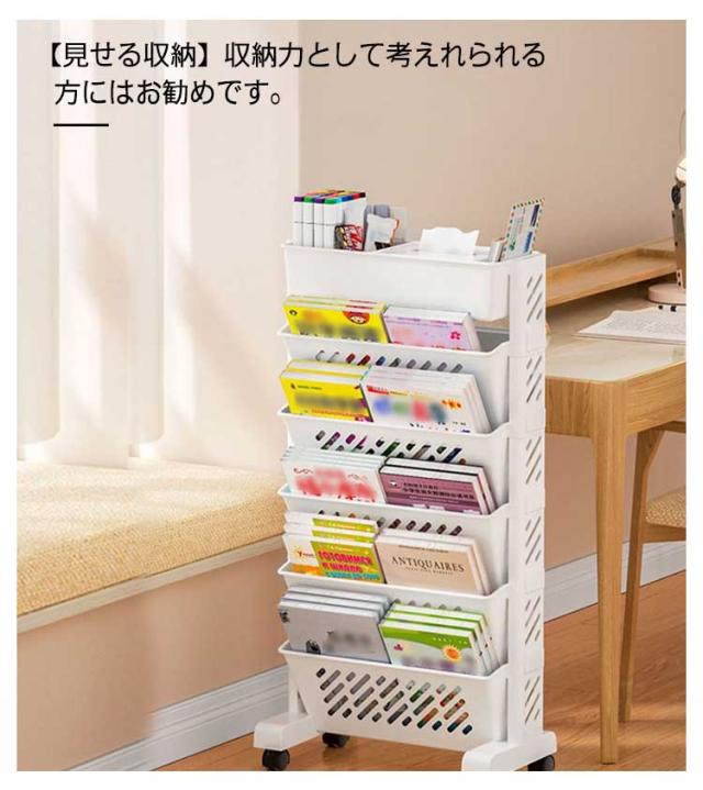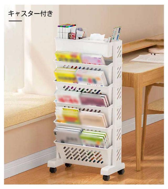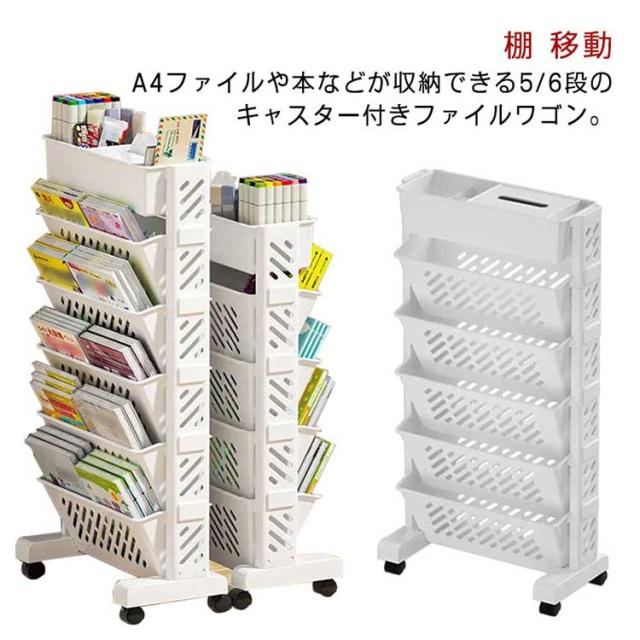 5段 6段 ファイルワゴン キャスター付 新聞収納 マガジンラック A4対応 書類 ファイル立て 雑誌収納 本立て 仕切りデスク下本棚 収納ボックス 棚 移動 小物収納 文房具収納 図書館 収納棚 デスク下収納 本収納 収納