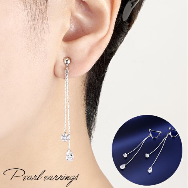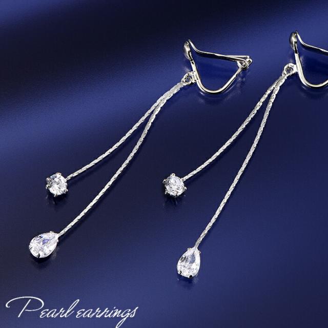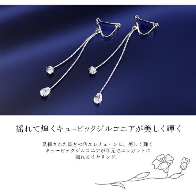 ソフトフィット イヤリング 揺れる キュービックジルコニア レディース 痛くない 落ちにくい シンプル シルバー エレガント 30代 40代 50代 揺れて煌く「キュービックジルコニア」イヤリング
