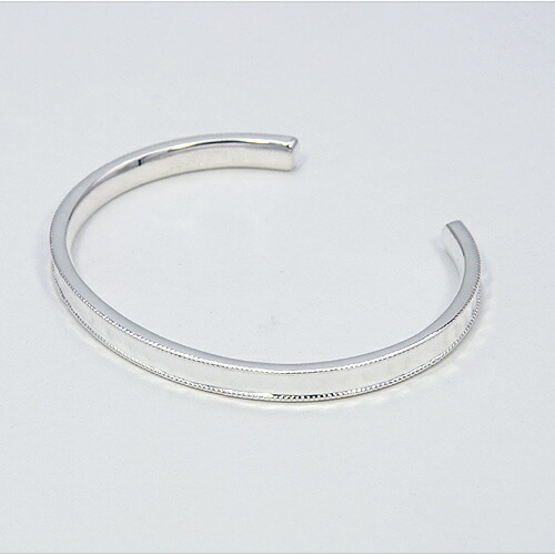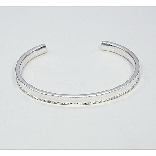 微妙な凹凸感と繊細なミル打ち加工のシンプルなバングルブレス。
