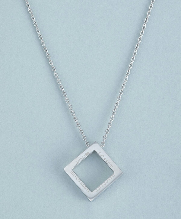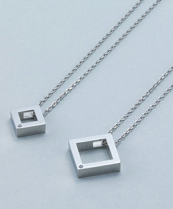 スクエア メッセージ ペアネックレス サージカルステンレス 金属アレルギーフリー ジルコニア 英字 英文 四角形 幾何学 シルバー シンプル ペア