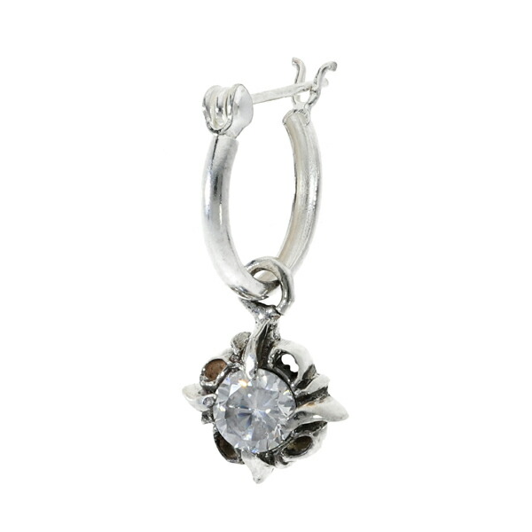 アラベスク ジルコニア チャーム フープピアス 1P 片耳用 シルバー925 ピアス リングピアス 揺れる トライバル 唐草模様 蔦 ツタ 植物 ゴシック