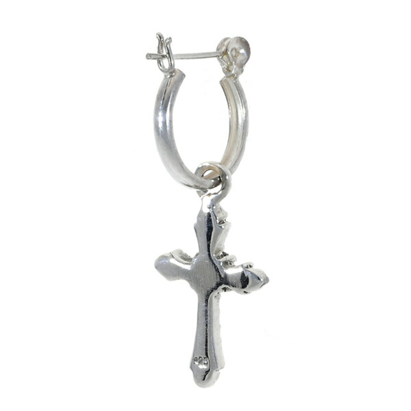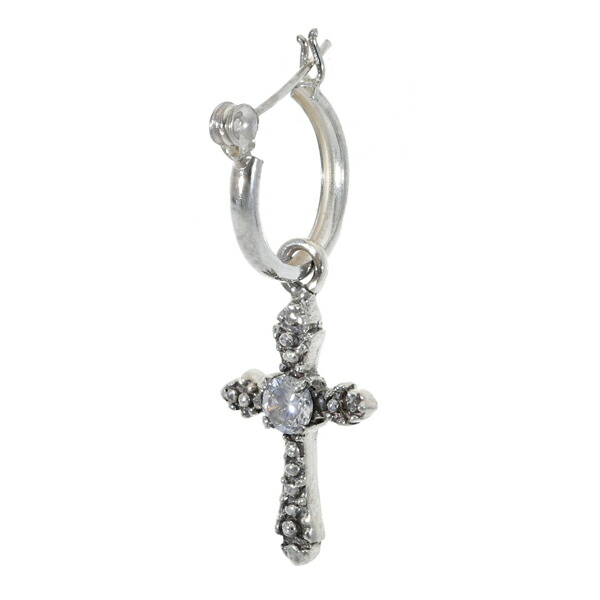 クロス 十字架 アラベスク ジルコニア チャーム フープピアス 1P 片耳用 シルバー925 ピアス リングピアス 揺れる トライバル 唐草模様 蔦 ツタ 植物