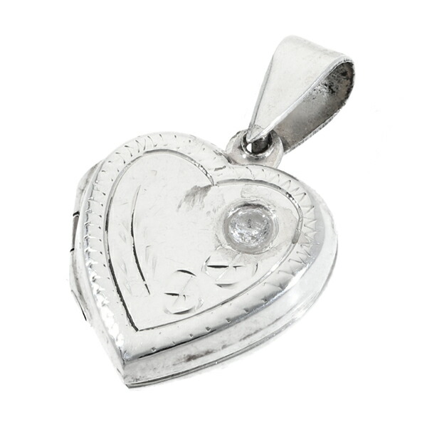 ハート ジルコニア ロケット ペンダントトップ ネックレスチャーム (チェーンなし) シルバー925 ネックレス ペンダント 写真入れ ロケットペンダント