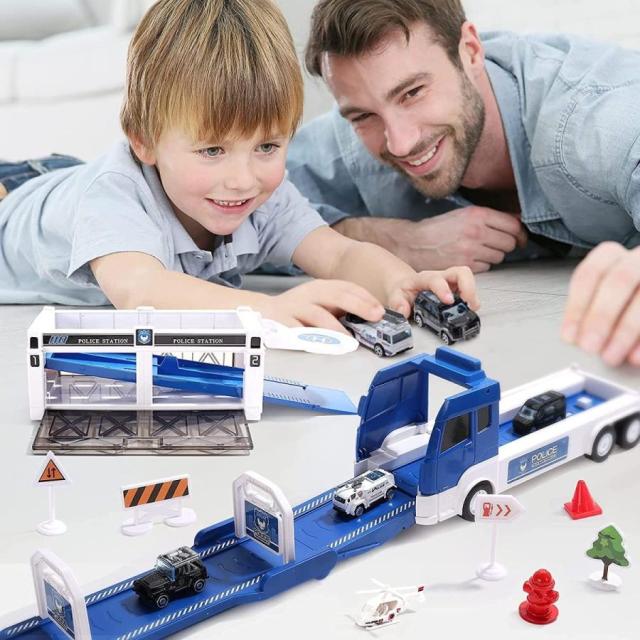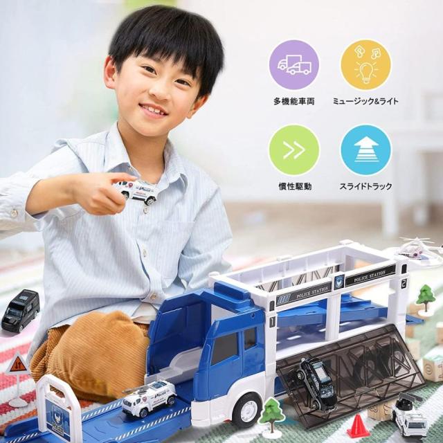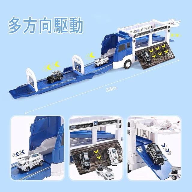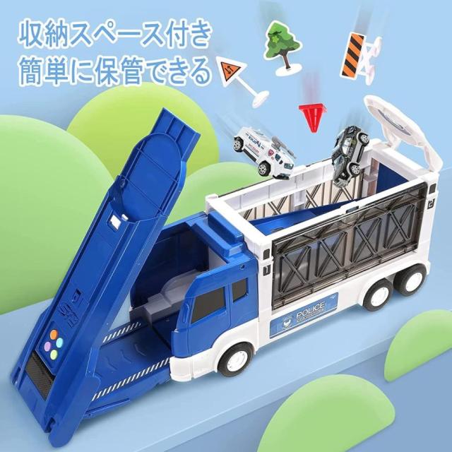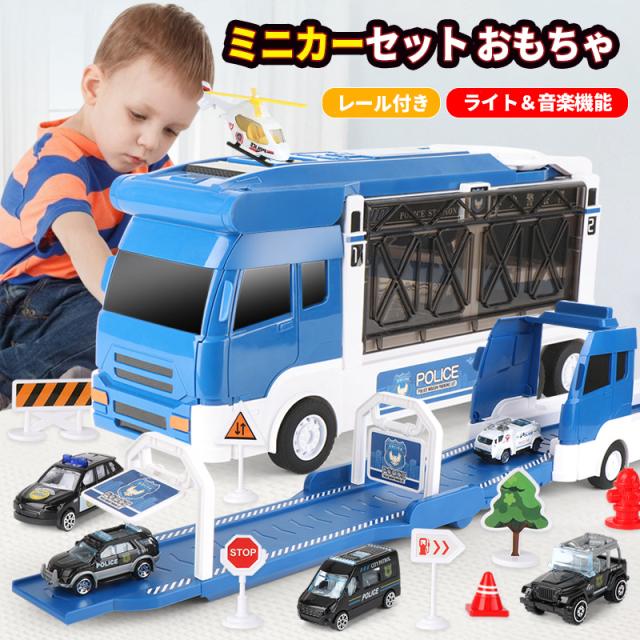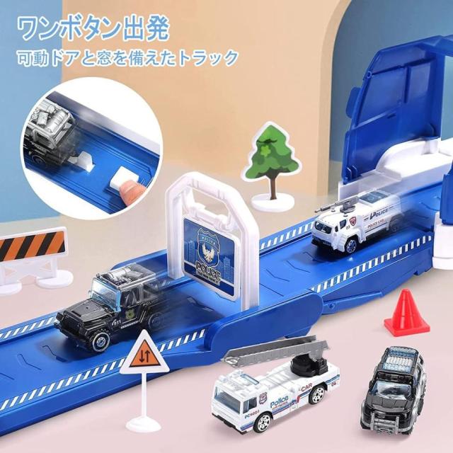 弊店のパトカーセットは収納可能な大型パトカー本体&6つ合金ミニカー、出発レールといろんなパーツを含めたおもちゃセットです。