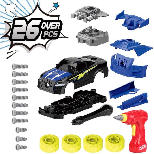 車おもちゃ DIY 車セット 組み立て おもちゃ レイシングカー かーおもちゃ 分解おもちゃ 子供用 サウンド ライト付き26ピース