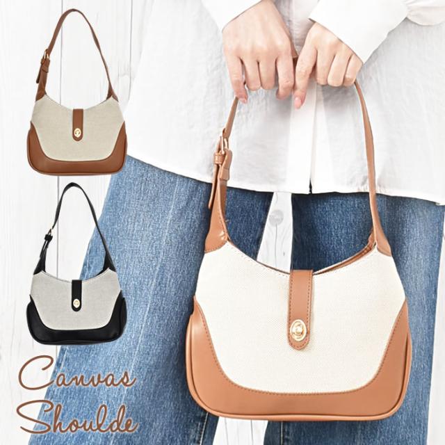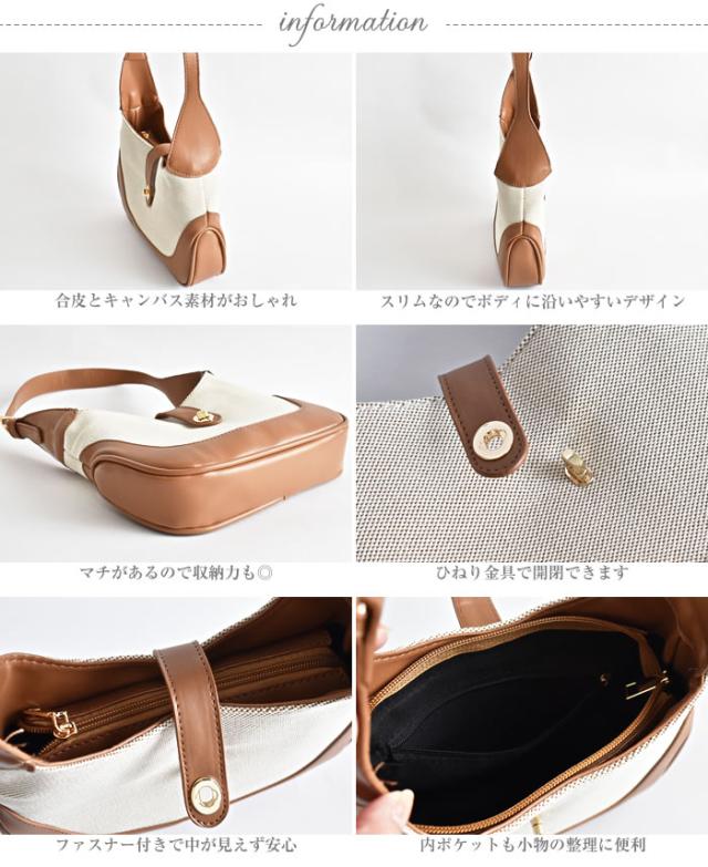 ワンショルダーバッグ レディース 宅配便配送 バッグ ファスナー ポケット キャンバス カバン 鞄 bag ショルダーバッグ 斜めがけ カジュアル かわいい おしゃれ シンプル 大人 キャンバス合皮ワンショルダーバッグ