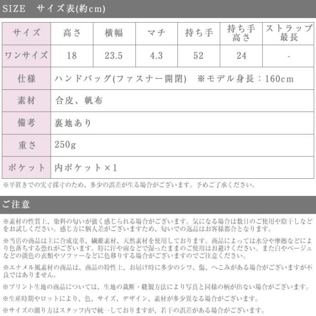 | 仕様 | ハンドバッグ(ファスナー開閉) ※モデル身長:160cm |