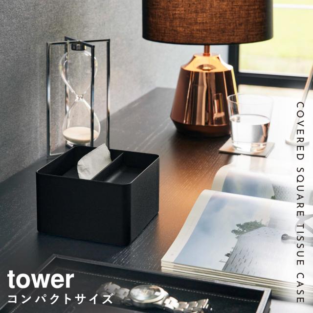 蓋付きハーフティッシュケース タワー 山崎実業 tower おしゃれ ティッシュケース ハーフ 小さめ おしゃれ モノトーン ホワイト ブラック 6195 6196