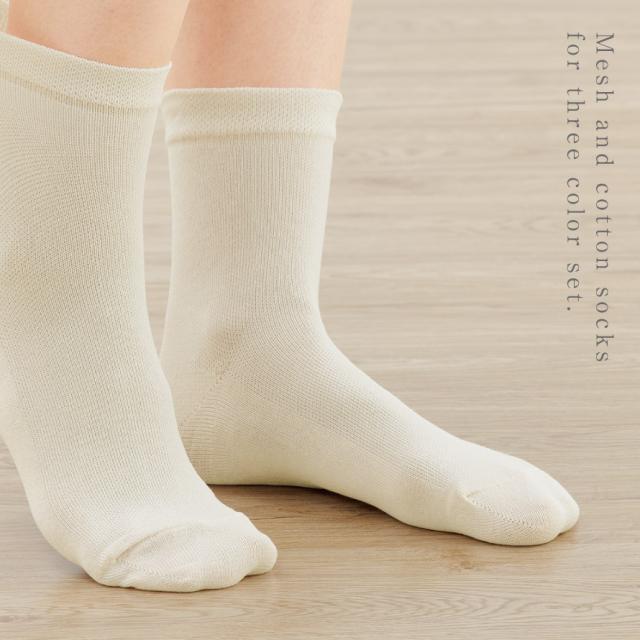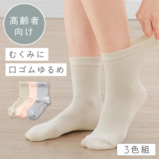 履き口 ゆったり 靴下 レディース 【3色組】22-25cm 綿 春夏 夏用 薄手 メッシュ 涼しい 【 口ゴムなし みたいな履き心地】 ゆるめ 口ゴムゆったり 締め付けない むくみ 介護 高齢者 シニア 足のむくみ さらっとメッシュなコットンソックス 跡がつかない