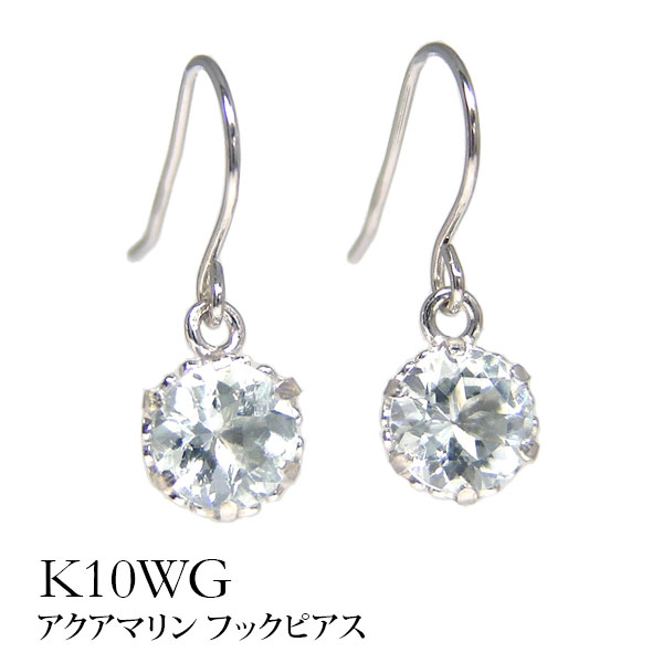 アクアマリン フック ピアス 4mm K10WG 10k 10金 ホワイト ゴールド