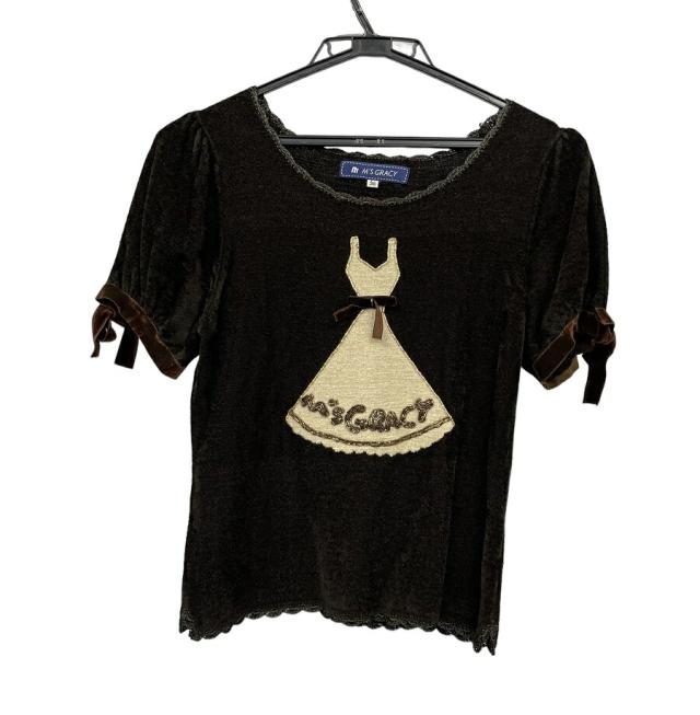 エムズグレイシー トップス 半袖 ブラウン ダークブラウン ワンピースデザイン ロゴ ビーズ 38 レディース M’S GRACY 【中古】