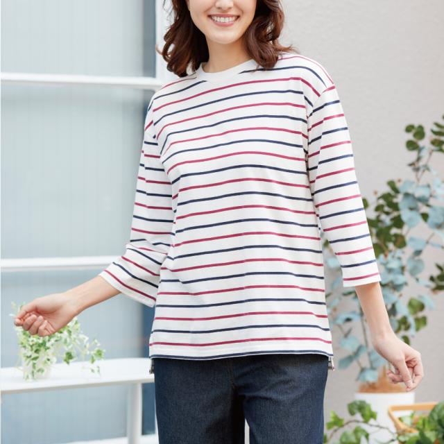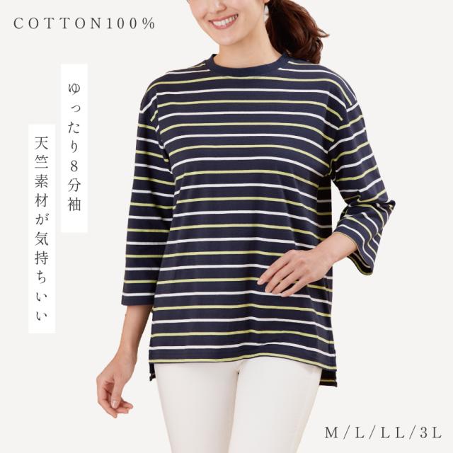 Tシャツ 綿100% レディース,トップス レディース ボーダー,綿100 プルオーバー,プルオーバー,Tシャツ,tシャツ,ボーダー,天竺,8分袖,八分袖,綿100%,コットン100%,綿,コットン,100,肌に優しい,敏感肌,乾燥肌,クルーネック,丸首,リブ襟,細見え,着痩せ,すっきり,お尻が隠れる,隠せる,お尻,お腹,カバー,スリット,ホワイト,白,ネイビー,紺,M,L,LL,3L,大きいサイズ,大きめ,ゆったり,春,夏,春夏,大人,レディース,女性,お年寄り,高齢者,シニア,20代,30代,40代,50代,60代,70代,80代,おしゃれ,お洒落,オシャレ,かわいい,可愛い,シンプル,カジュアル,きれいめ,体型カバー,コーディネート,着回し,細見え,着痩せ,着心地,ミセス,ミセスファッション,婦人,