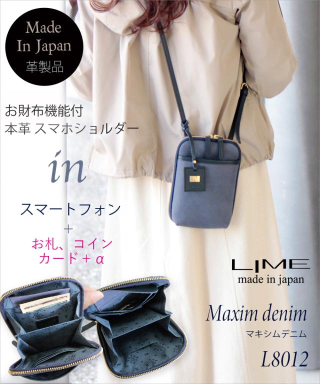 スマホショルダー レディース お財布ショルダー ショルダーバッグ 本革 スマホポーチ ミニバッグ スマホポシェット 日本製 デニム バッグ 斜めがけ 小さめ 長財布 ショルダー 大人 レザー 旅行 軽い 軽量 ギフト ライム マキシムデニム L8012 母の日 ギフト対応 ラッピング