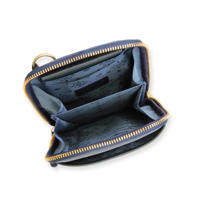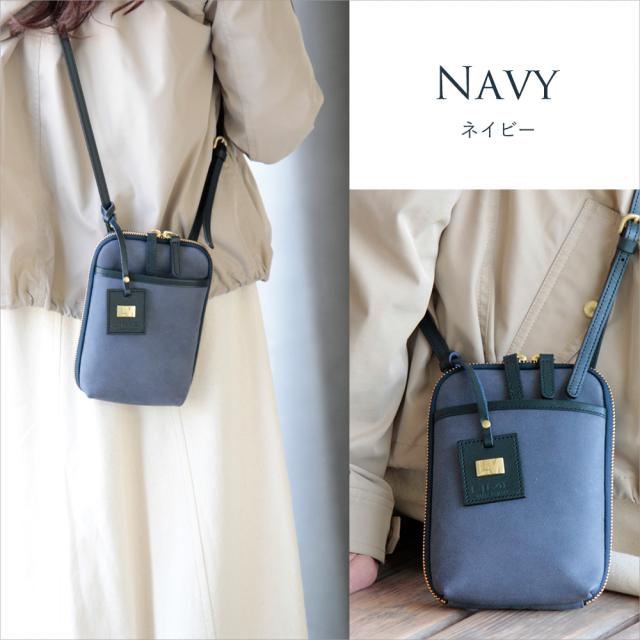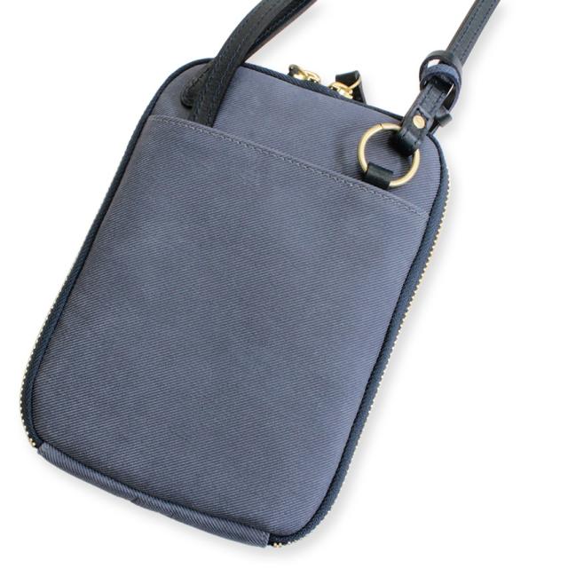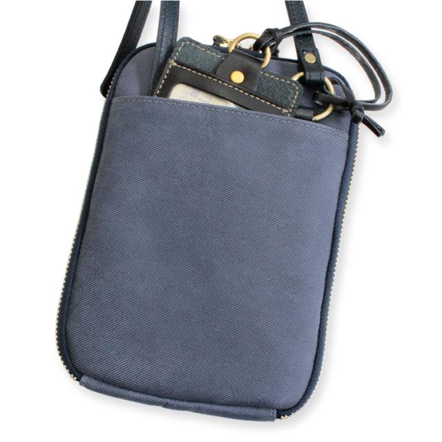 ヴィンテージジーンズのような味と深み、とろみのあるリッチな質感が魅力の人気素材『デニムレザー』を使った、お財布代わりにもなる多機能スマホショルダーです。