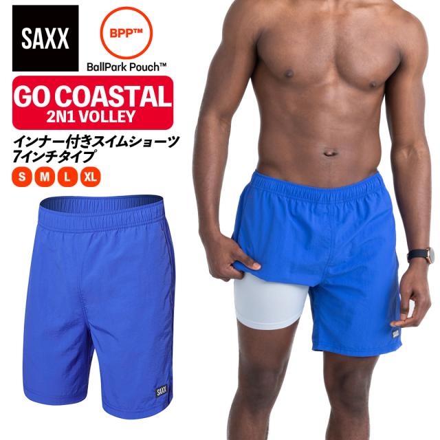 GO COASTAL 2N1 VOLLEY SHORT 7インチ ゴーコースタル メンズ スイムショーツ 水着 トランクス 水陸両用 サックス SAXX UNDERWEAR