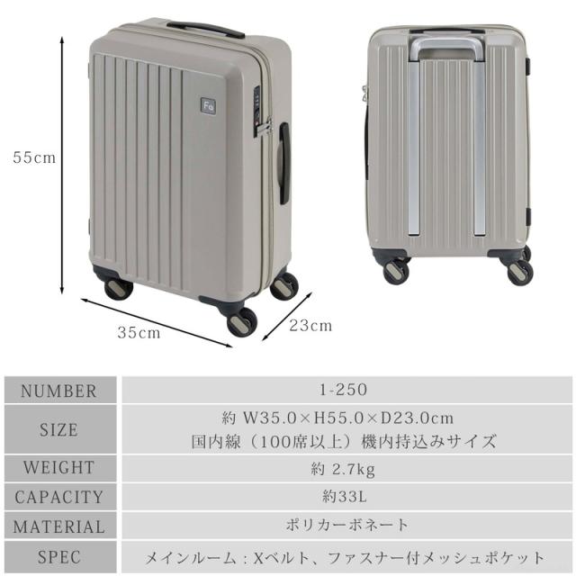 キャリーケース メンズ レディース スーツケース 機内持ち込み型 4輪 33L TSAロック FREQUENTER フリクエンター【1-250】ブランド 人気