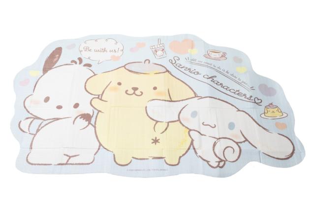 シナモン・ポムポムプリン・ポチャッコが描かれているキュートな柄のダイカット型レジャーシートです。クッション性があり、通常のレジャーシートより厚めでお尻が痛くなりにくいです。裏面はアルミ蒸着になっているので汚れがつきにくく、ピクニックや花見の他におうちの中でも使用できます。
