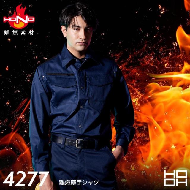 (難燃生地) 綿100% 難燃薄手シャツ 村上被服 4277 耐炎 耐熱 制電 HOOH 鳳凰 (社名ネーム一か所無料)