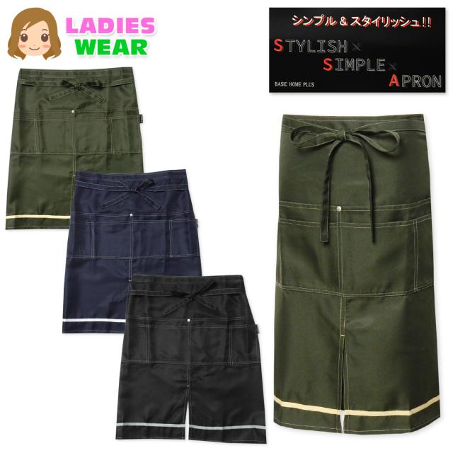 【送料無料】婦人 レディース 腰巻 エプロン 前結び ロング丈 多ポケット 裾スリット スタイリッシュ 大人用 sl-0291【メール便対応】