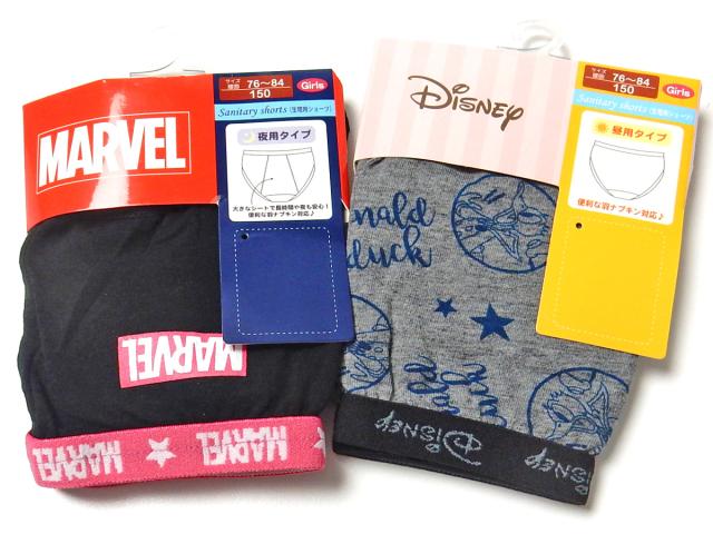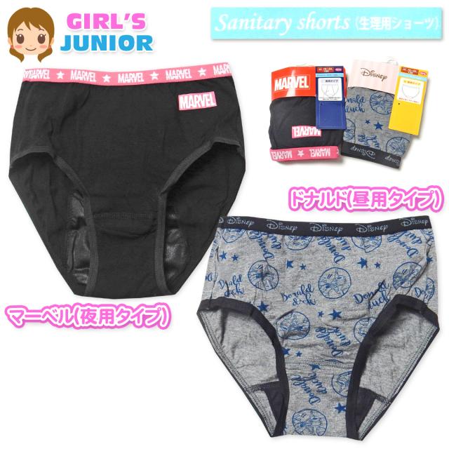 【送料無料】女児 ジュニア サニタリー ショーツ 生理用 羽付き対応 夜用 昼用 マーベル ドナルド 綿混 下着 yg-1855【メール便対応】
