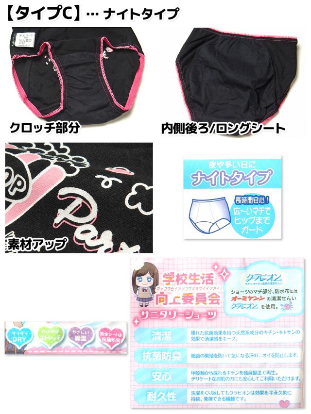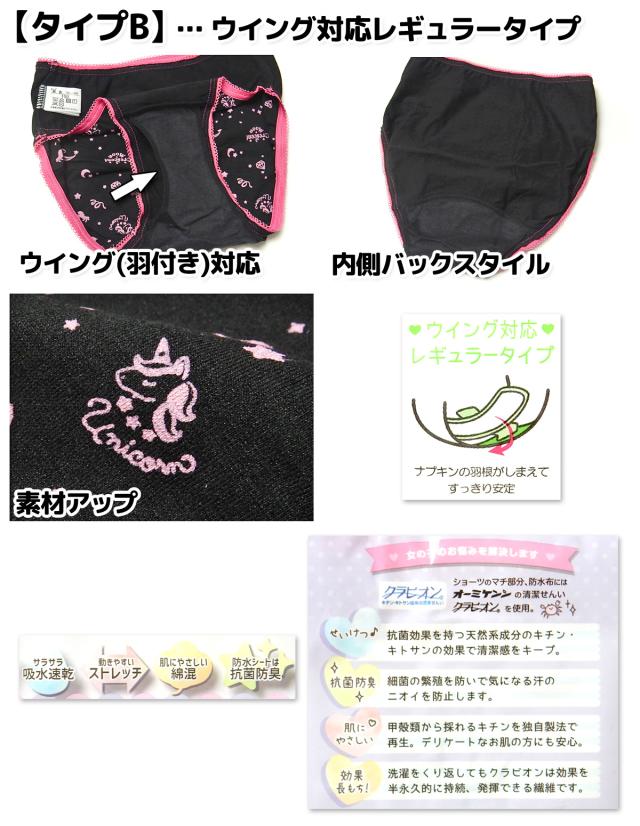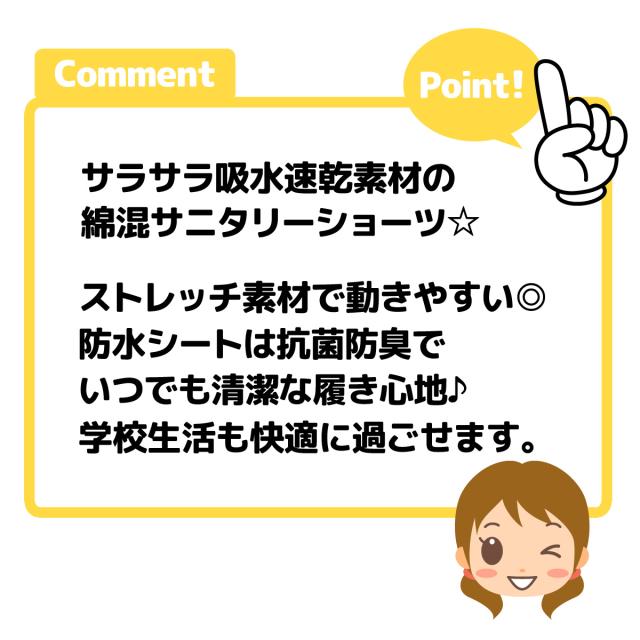 【送料無料】女児 ジュニア サニタリー ショーツ 生理用 吸水速乾 綿混 ストレッチ 防水シート抗菌防臭 下着 yg-1978【メール便対応】