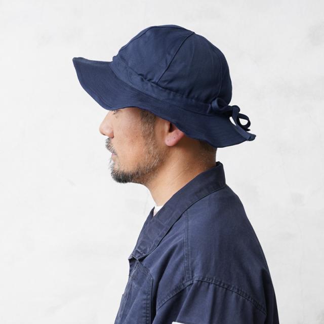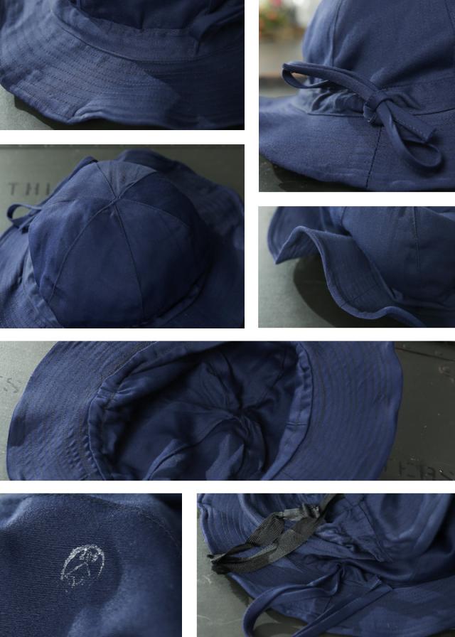 実物 新品 デッドストック スウェーデン軍 アジャスタブル ブーニーハットのご紹介です。60年代にスウェーデン軍で使用されていたブーニーハットです。肌触りの良い目の詰まったコットン生地で、ツバの先にワイヤーが入っており、角度を変化させることができます。また、クラウン部分のフチにフィット感やサイズ調整可能なドローコードが入っています。目を惹く鮮やかなネイビーカラーと丸いクラウンフォルム。男女共に着用可能なデザインで、約7cmのツバがちょうど良く、好みでツバのニュアンスを効かせて雰囲気を楽しむことができます。