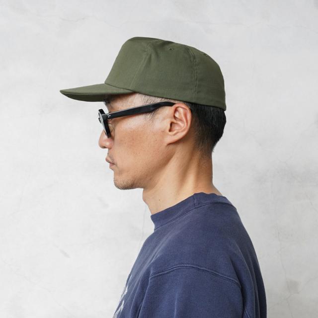米軍の熱帯地用のユーティリティキャップです。薄手でサラッとしたCVCツイルを使用し、額に触れる部分は裏地に硬めのメッシュやアイレットがあり通気性に考慮されています。内側のフチには合皮製のビン革があり、補強しつつ整髪剤や汗から帽子を保護しています。乾きが早く、型崩れしにくい特徴を持つポリエステルと綿の混紡生地なので、通年使えてお手入れも簡単。