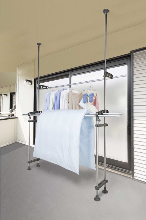◆Wポール支柱で安定性も抜群、通気性良くふとんも干せます。