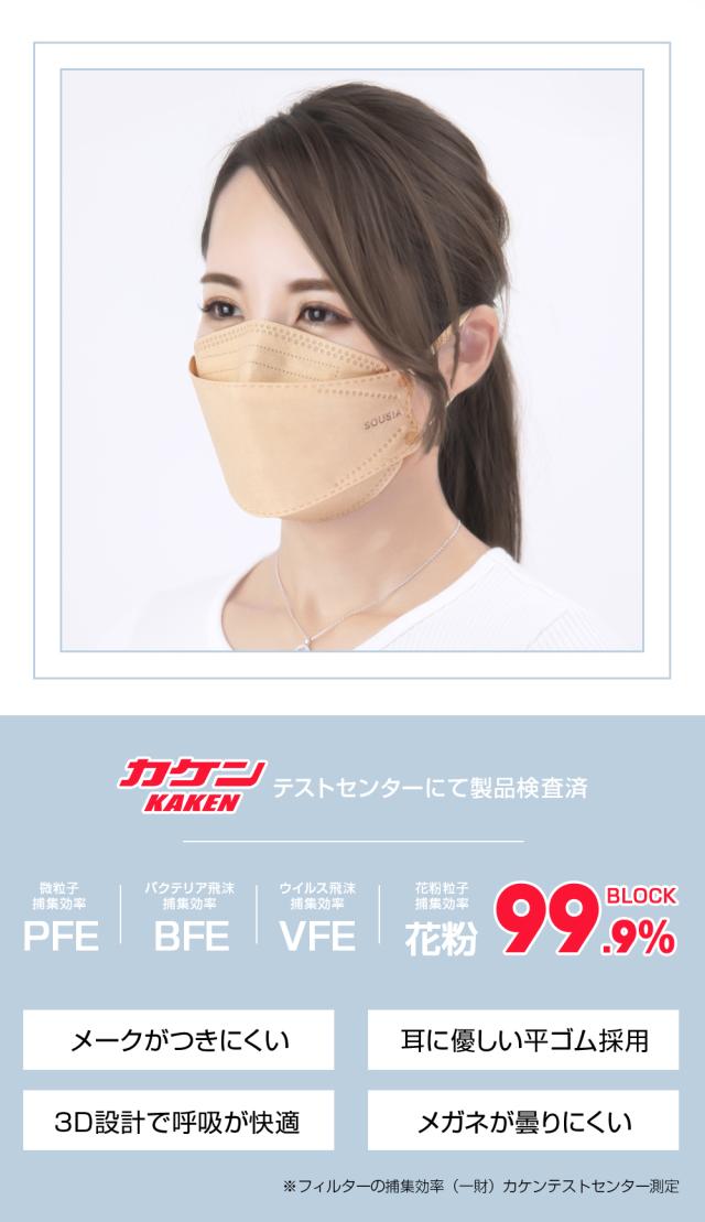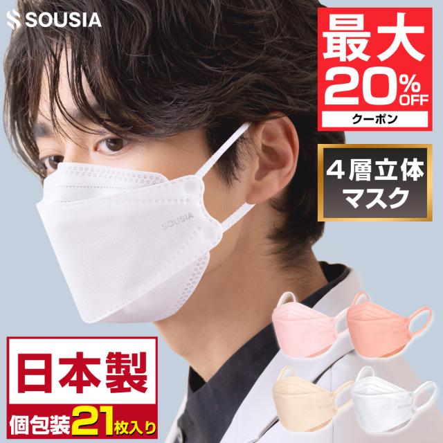 日本製 マスク 不織布 立体 21枚 3Dマスク 不織布 マスク 耳が痛くない 肌に優しい カケンテスト済み 99.9%遮断 使い捨て 花粉 男女兼用